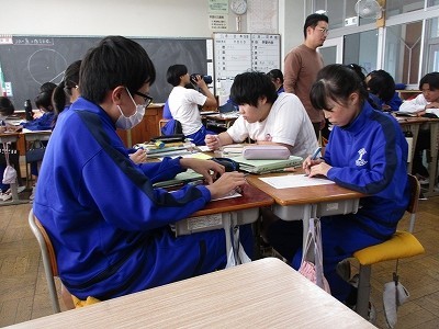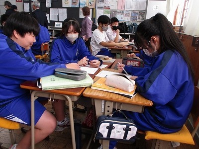円周角の性質を用いて角度を求めたり、作図をしていたりしました。作図に苦戦していましたが、先生が用意したワークシートにヒントがありましたね。生徒のみんなは、気づいていたのかな?