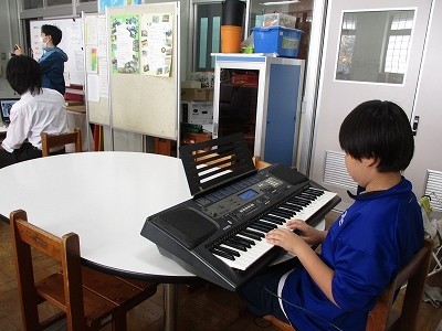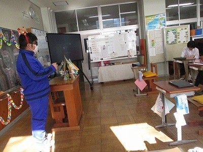 ちょっと早めのクリスマス会を行いました。ジングルベルの生演奏で、トナカイ?登場。それぞれの生徒が考えた「お楽しみ!」をみんなで楽しみました。