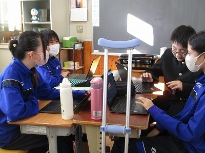 防災について学んだこと、体験したことを生かし、班ごとにテーマを設定してまとめています。3学期に発表会を行う予定です。