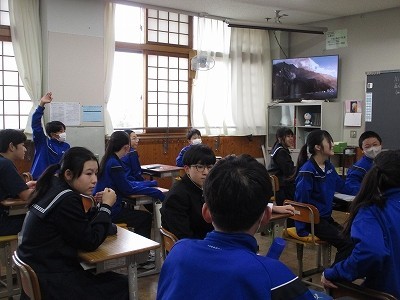 宿題の書き初めを掲示したり、来週の二中との交流のグループ分けをしたりしていました。久しぶりに、みんなで何かに取り組むことをしながら、仲間と触れ合って、楽しいですね。