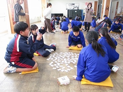 第二中学校の1年生が来校し、百人一首大会を行いました。二中のみなさん、来てくれてありがとうございます! グループに分かれて一緒に行うことで、少しずつお互いを知ることが出来たかな? まだまだ、直接声をかけたり、話をしたりするのは難しいかったですね。まだまだ交流は計画されています。少しずつ、少しずつですね。