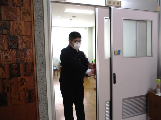 高校入学試験へ向けて、面接練習が行われました。学校運営協議会委員の皆さまにも面接官として御協力いただきました。ありがとうございました。3年生は緊張しましたね。緊張して当然です。お疲れ様でした。
