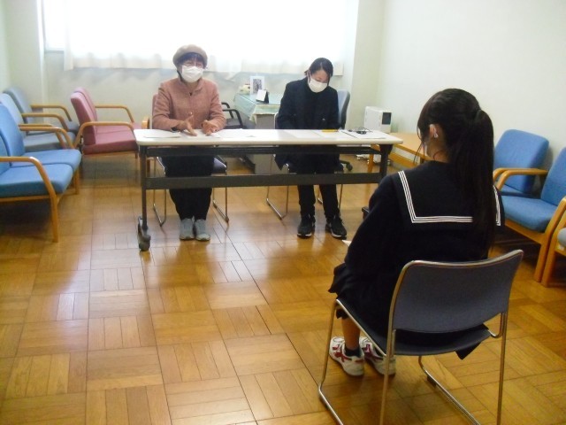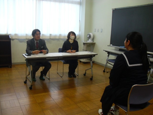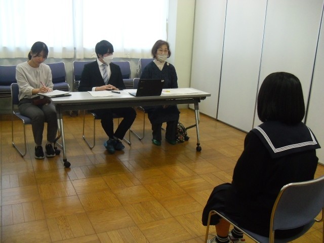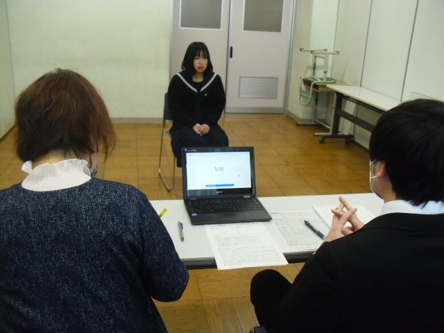 面接練習2日目の様子です。緊張しながらも、質問にしっかり答えていました。