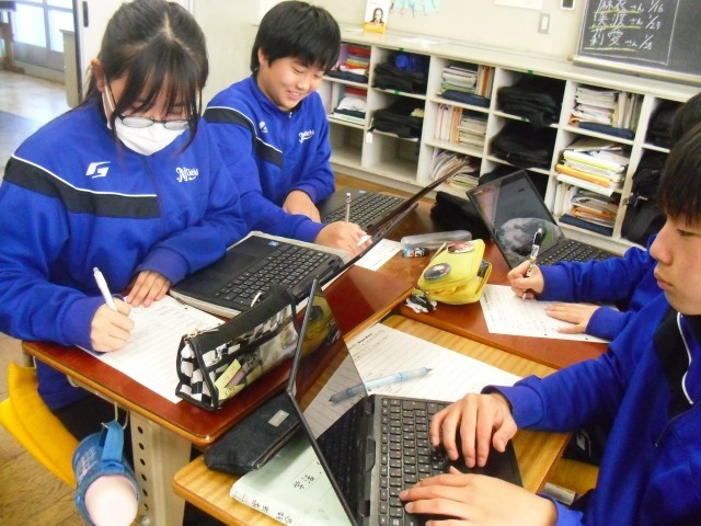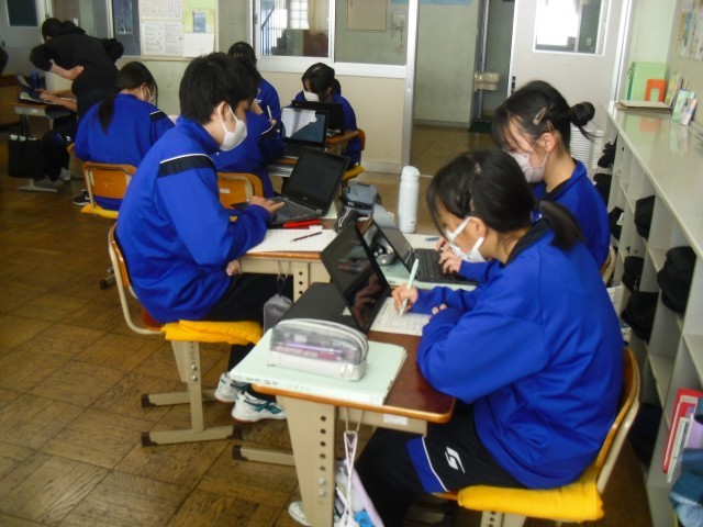 進路学習が始まりました。まずは、私立高校に関わることを調べます。受検するために検定料がかかることを知り、驚いている生徒もいました。