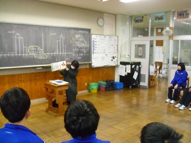 帰りの会の時間に、読み聞かせをしていただきました。ボランティアの方、ありがとうございました。
