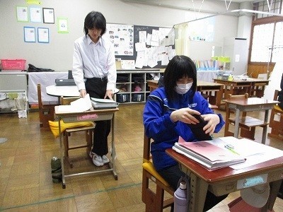 授業の間の10分休みの様子です。他愛のない話で盛り上がっています。楽しそうです!