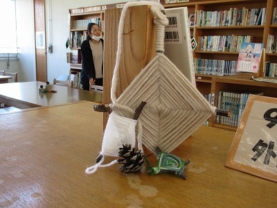 今、学校の図書館がいい雰囲気になっています。木のぬくもり、毛糸のあたたかさを感じさせるオブジェが並んでいます。昼休みはゆったりとした気持ちで、図書室での読書はどうですか?