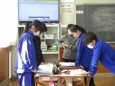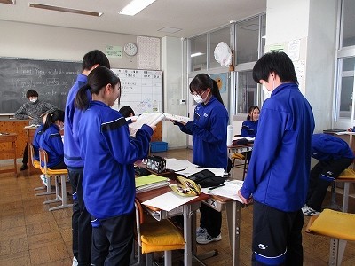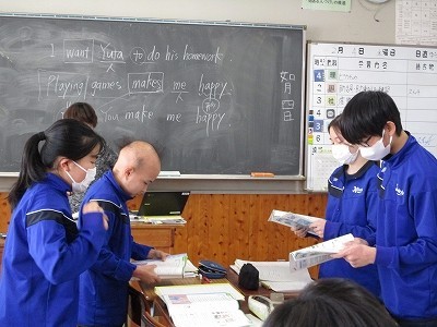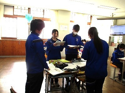 教科書の対話文を班で役割分担して読みます。役割になりきって、感情豊かに表現するよう頑張っていました。