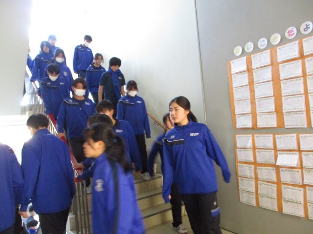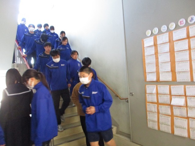 不審者対応訓練が行われました。今年度、2回目の訓練でした。生徒は訓練があることを知りませんでしたが、1回目の訓練をよく覚えていたようで、取るべき行動ができたようです。5時間目の授業が終わろうするときだったので、少しびっくりした生徒もいたようでした。