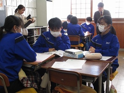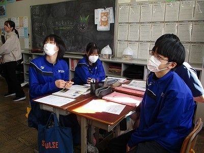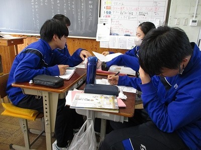 教科書にある「黒蜘蛛の元次」という題材です。二人の兄弟がたった1つの約束「人に迷惑をかけない」という「自由」な世界で暮らしていたというお話。どうやら二人の兄弟の「自由に暮らす」の捉え方が異なるようです。その違いについて生徒のみんなが考えました。ある生徒は、「兄の自由は『自分がやりたいことやる』 弟の自由は『自分の欲望をみたすこと』」と考えました。どの生徒も自分の言葉を用いて上手に表現していました。 また、「兄も弟も、自分の好きなことをしているという点では違いはない」という意見も。「自由」についての見方を広げたり、深めたりするとともに、「自由」との向き合い方を考える機会になったのではないかと思います。
