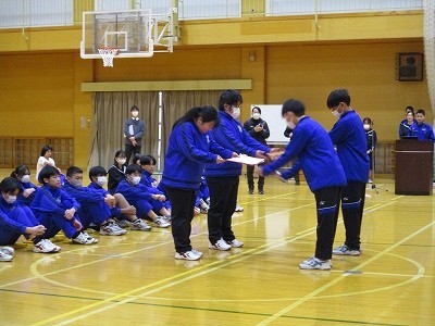 3年生を送る会が行われました。生徒会役員、1,2年の学年委員会が中心となって準備をしてきました。懐かしい先生のメッセージ動画、1,2年生の合唱など、こころ温まる会でした。1,2年生は帰りの会で、歌の練習を積み重ねてきました。来週は卒業式です。残り少ない3年生との時間を大切にしたいですね。