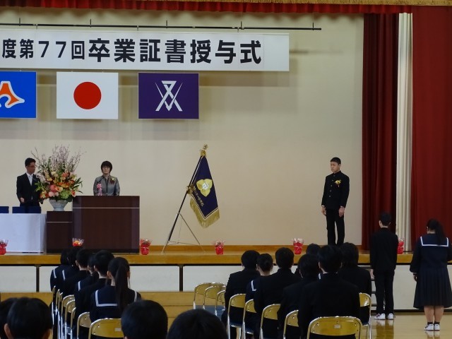 卒業証書授与式が行われました。33名の3年生が卒業しました。少ない人数だからこそ、力を合わせ、協力することができました。個性豊かで、エネルギーが満ち溢れる3年生でしたね。分かれは寂しいけれど、新たな出会いとさらなる成長のための別れと信じて前へ進みます。