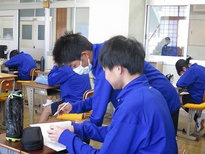 学級組織を決めていました。本人の希望をもとに、担任の先生が調整していきます。その間に、今年1年の抱負を書いたり、係の仕事分担の相談をしたりしていました。
