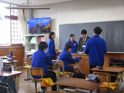 朝の会が終わって、1時間目が始まる間の様子です。先生と雑談したり、次の授業の準備をしたりしています。