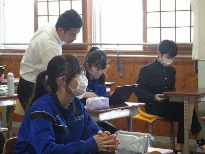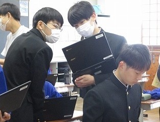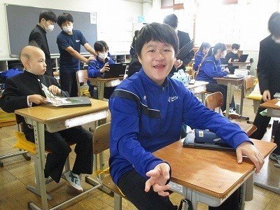 朝の会が終わって、1時間目が始まる間の様子です。クロームブックを覗いている生徒が多くいます。まさに、文房具ですね。