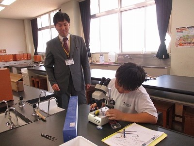 たんぽぽを顕微鏡で観察していました。たんぽぽの黄色い花びらのように見える1つ1つが花であることなど、たくさんの発見がありました。