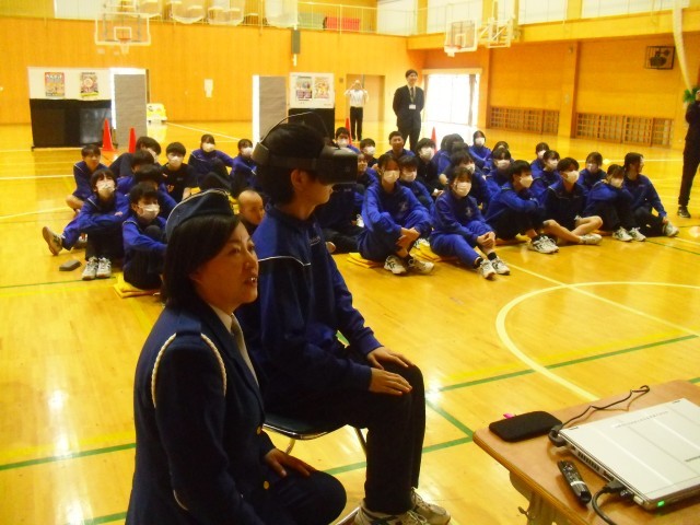 沼津警察署交通安全課による交通安全教室が開催されました。「ながらスマホ」の危険性や自転車の交通ルールについて、分かりやすく教えていただきました。VRで自転車事故を疑似体験したり、視野が狭くなるゴーグルをつけて自転車が横をすれ違うときの感覚を体験したりしました。