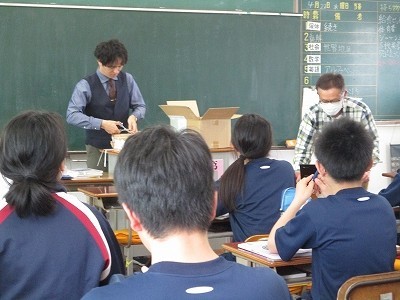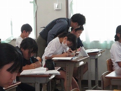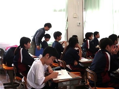これは第二中学校の授業の様子です。令和9年度の学校統合へ向けて、第一中の先生が第二中の先生と一緒に授業をします。