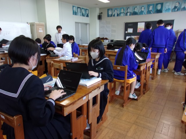 3年生の音楽の授業です。合唱練習をした後、曲について調べる学習を行いました。