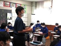 2年生の交通安全教室の様子です。3名の生徒に自転車を持ってきてもらい、体験型の交通安全教室を行いました。交通ルールを遵守することや、自転車の安全な乗り方について学習をしました。