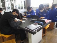 2年生の学活の様子です。期末テストに向けた学習計画を立て、終わった人からテスト勉強を始めていました。廊下では、一人ひとりの教育相談も行っていました。