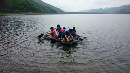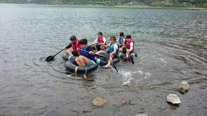 いかだ出航!はしゃいでいます。