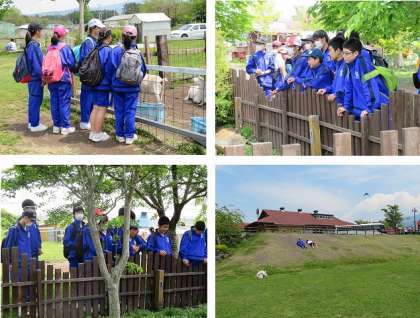 富士ミルクランドでは、動物たちに親しみました。氷穴への階段を降りていくと、ひんやりとした空気に思わず「寒い」。氷柱に歓声を上げました。中には、半袖・半ズボンの強者も数名。