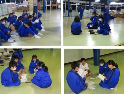 クラスごと輪になって、スタンツの話し合い。夜のキャンプファイヤーが楽しみです。そして食事作り。夕飯はカレーライス。ここで事件発生!カラスに豚肉を奪い去られてしまいました。「うちの班はベジタブルカレー」健気です。しっかりカレースープを飲み干しました。