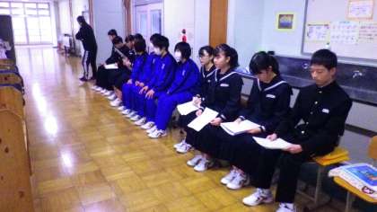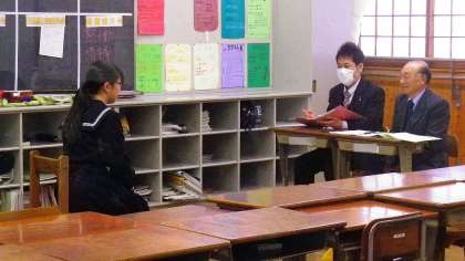 写真は3Bの様子です。ジャージ姿はC組の生徒で、受験に向けて面接の様子を参観させていただきました。