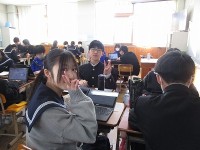 放課後の学年集会の時間を使い、1年生は「総合的な学習の時間」発表会の準備を行いました。2月1日の授業参観で、グループに分かれて学習したことを発表する予定です。今日は、そのときの段取りを確認していました。