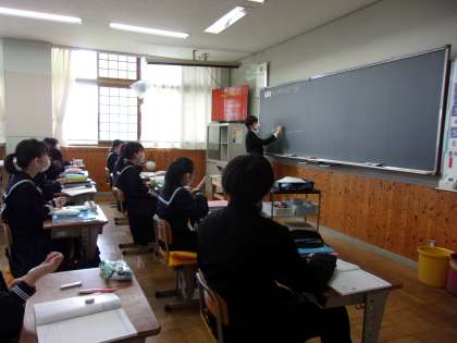 2年生の英語の授業です。過去進行形を使った文の学習をしていました。