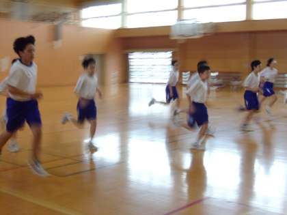 1年生の保健体育の授業です。シャトルランを行ってました。記録を伸ばそうと最後まで頑張る姿や、友達を応援する姿が見られました。