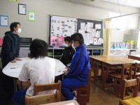 C組の理科の授業です。雲についての学習でした。教科担任が雲の写真を見せると、覚えた雲の名前を答えることができていました。