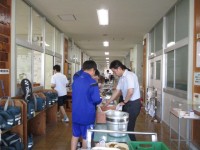 いただきますをした後に、おかわりをしたい生徒がおかずやごはんを増やしにいってい...