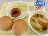 今日のメニューは、ソフトめん、牛乳、ミートソース、じゃが芋と大豆の唐揚げ、海藻サ...