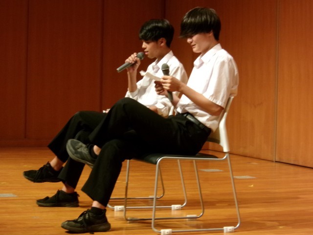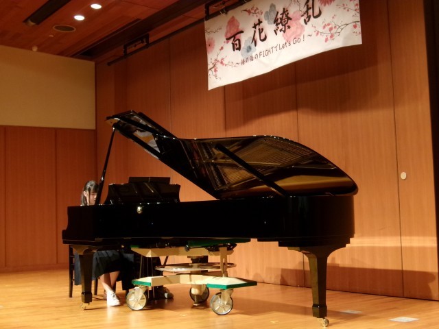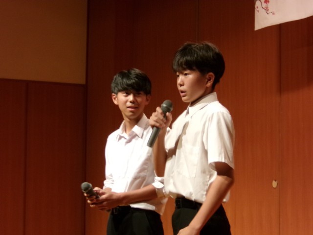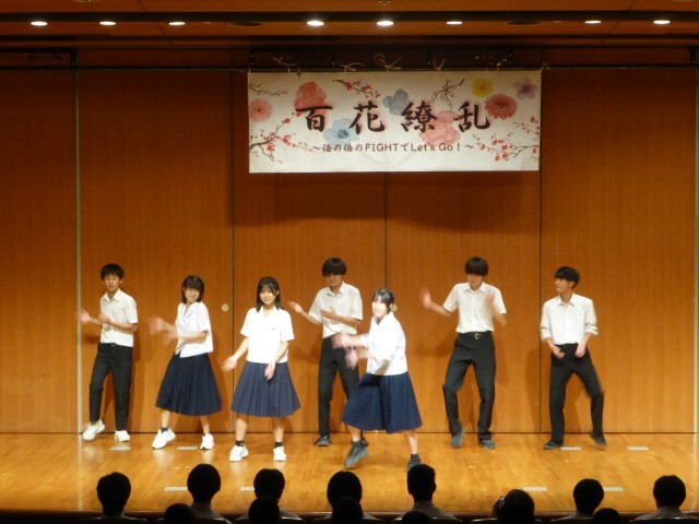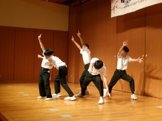3学年の合唱の後は、有志による生徒発表です。ピアノ連弾、ダンス、歌が披露され、会場は大いに盛り上がりました。