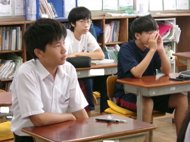 学年主任の先生が公立高校の入学者選抜について説明していました。身を乗り出すようにして、真剣な表情で聴く姿が印象的です。