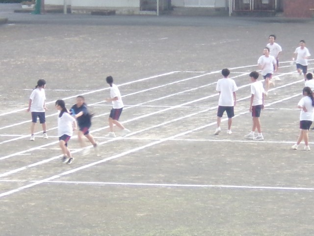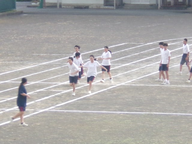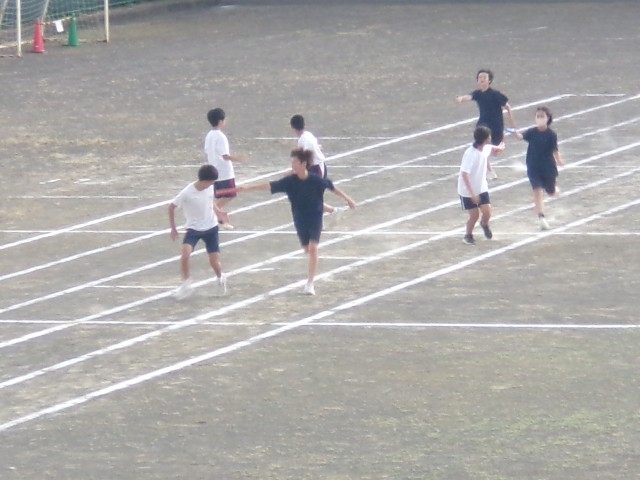 リレーの様子です。全力疾走してくる走者からスムーズにバトンを受けるのは難しいですね。