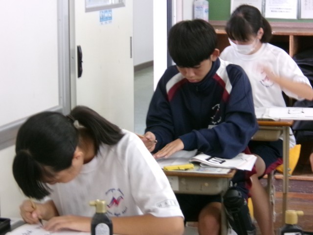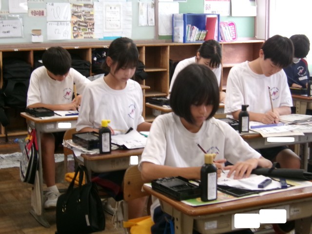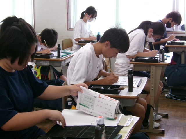 「書写」細筆で名前の練習をしていました。練習を終えると『日光』の清書です。