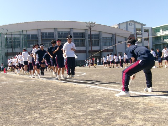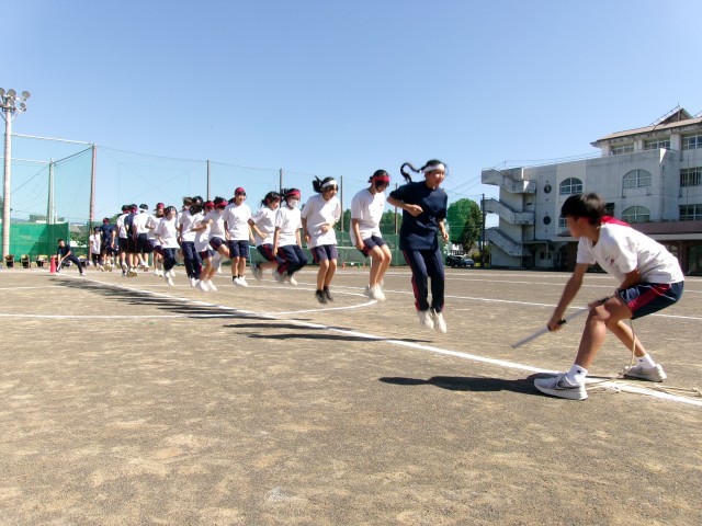 生徒会種目「クラスで団結 ぴょんぴょんぴょん」(長縄)2年生の様子です。