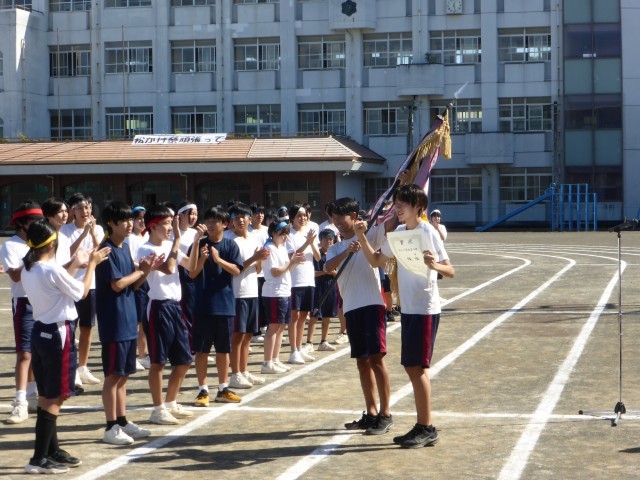 閉会式の様子です。全校生徒の充実感と、互いの健闘をたたえ合う気持ちが感じられた松かげ祭 体育の部でした。中心となって企画、運営にあたった実行委員のみなさん、ありがとうございました。