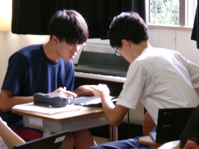 曲作りの取りかかりとして、リズムとそれに会わせた歌詞を考えていました。短いフレーズに歌詞をつけることに苦労しているようでした。