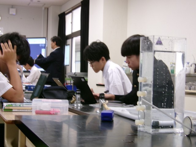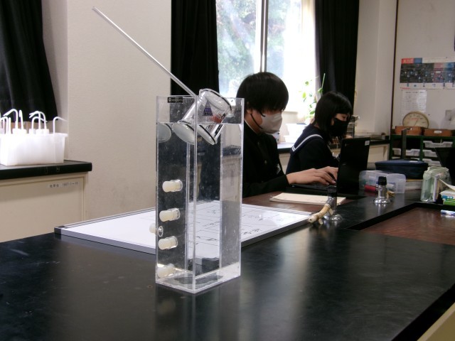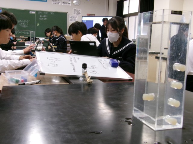 「水中の物体にはたらく力」の授業です。実験結果から、水圧は物体にどのようにはたらいてるのか、ChromeBookにまとめをしてます。
