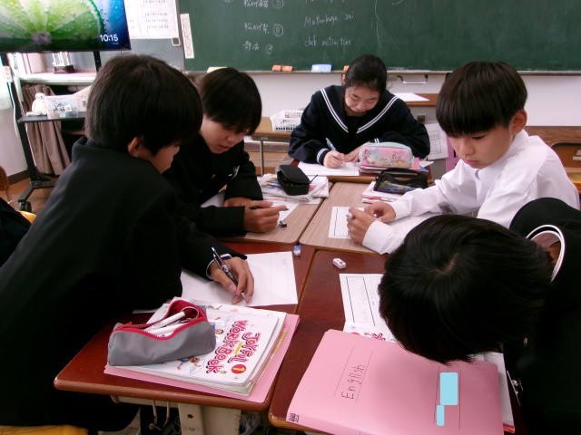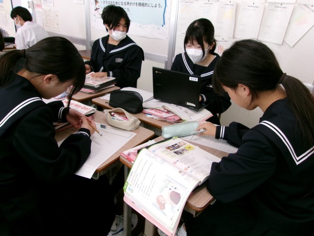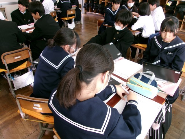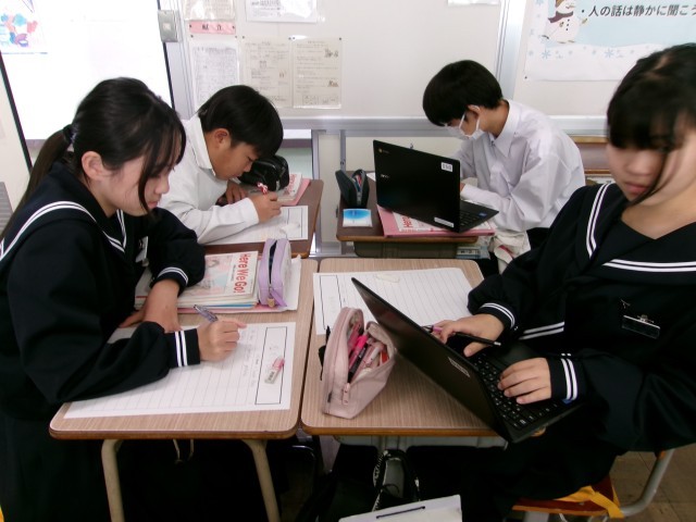 グループで、二中に関わることを英語で発表できるように、テーマを決め準備を進めています。