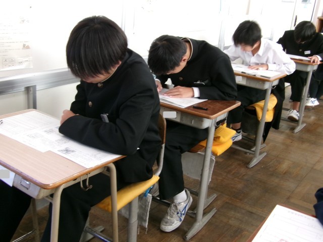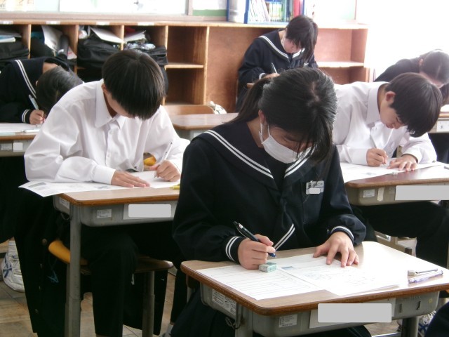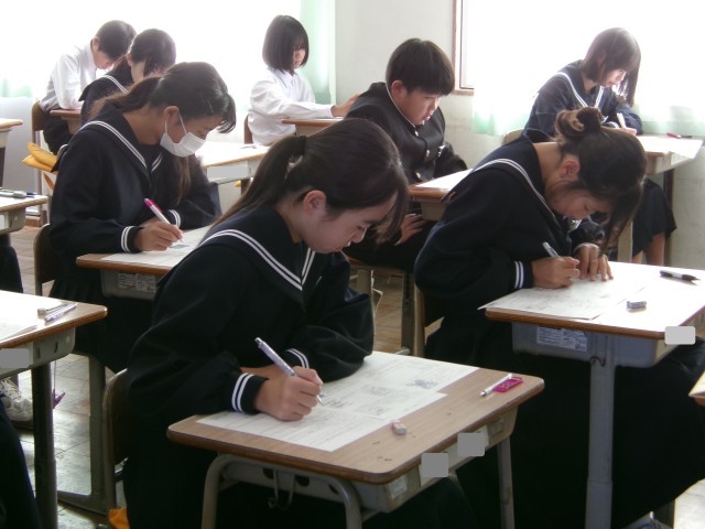 今日は期末テスト。1年1組の教室の様子です。ペンを走らせる音だけが教室に響きます。