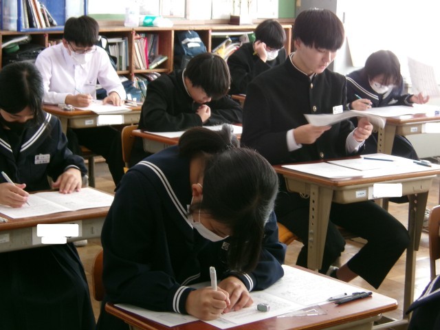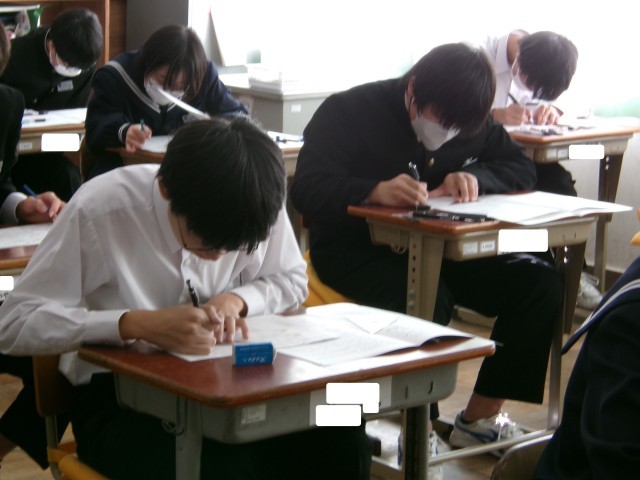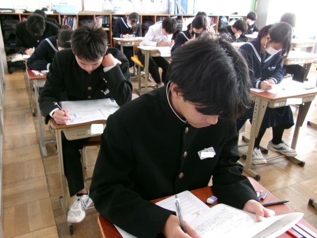 3年1組の教室の様子です。引き締まった表情が印象的です。