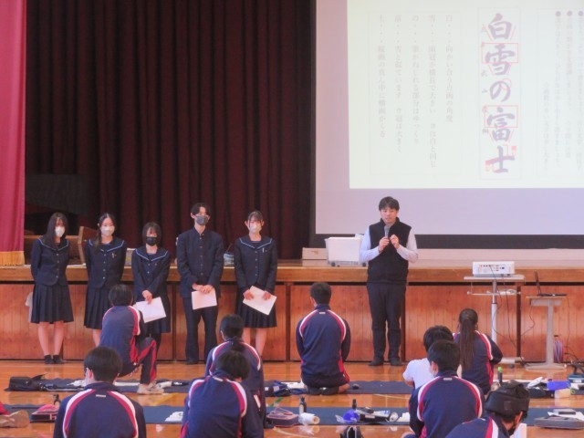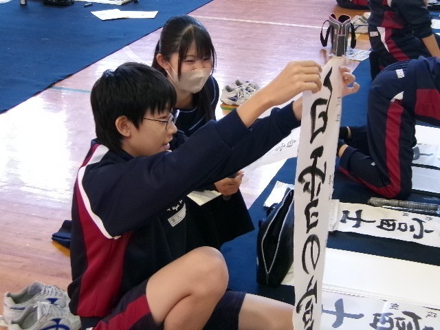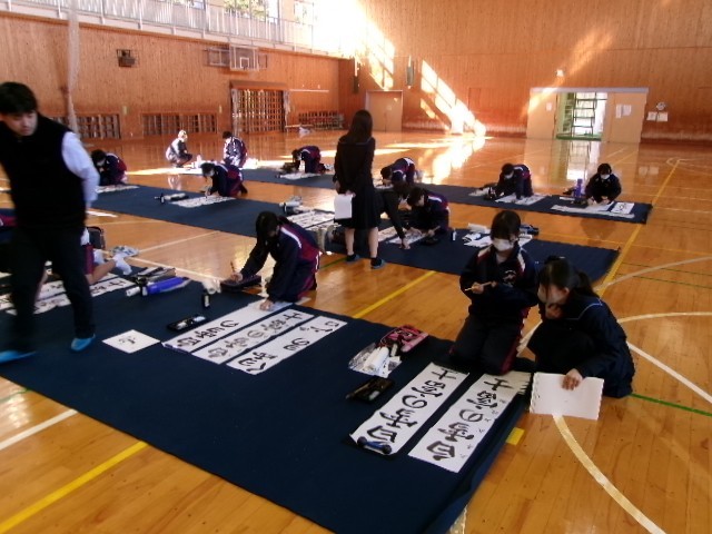 11月20日(木)沼津西高校芸術科書道専攻の生徒に来校していただき、学年ごと書き初めの指導をしていただきました。