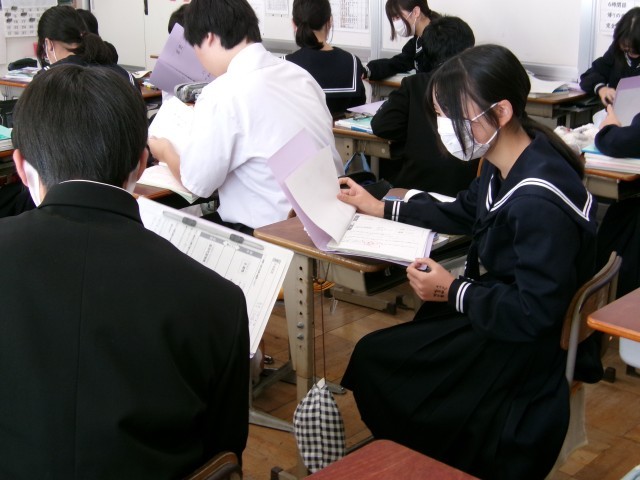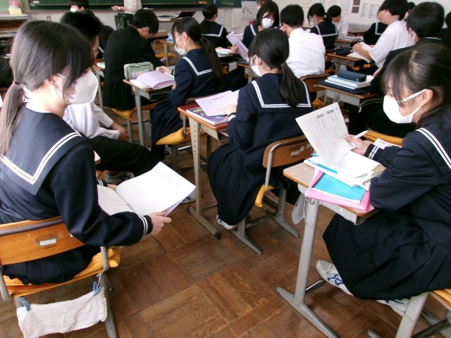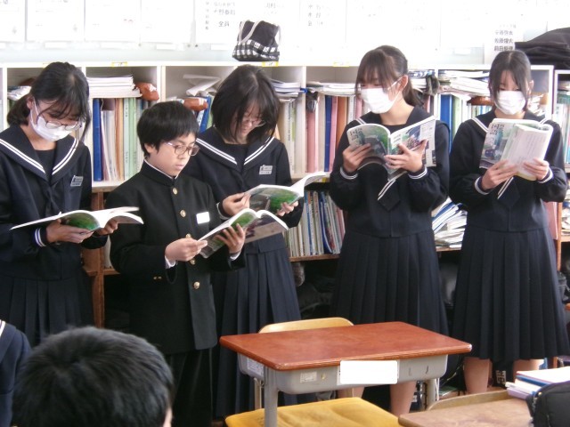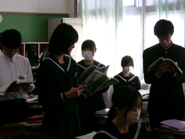 「敦盛の最期」を朗読するときに注意することをファイルで確認し、仲間と共有していました。2つのグループの\発表の様子です。