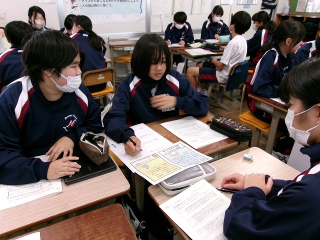 ワークシートを利用して、自己表現がアサーティブタイプか、受け身タイプか、攻撃タイプか個人でチェックしました。それぞれのタイプについて、スクールカウンセラーの柏木先生から詳しい説明をしていただき、特徴がよくわかりました。