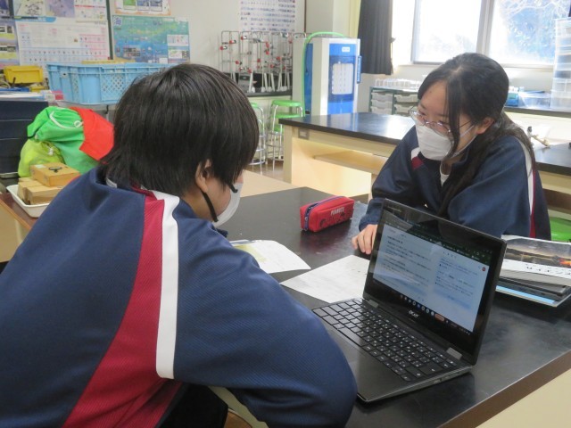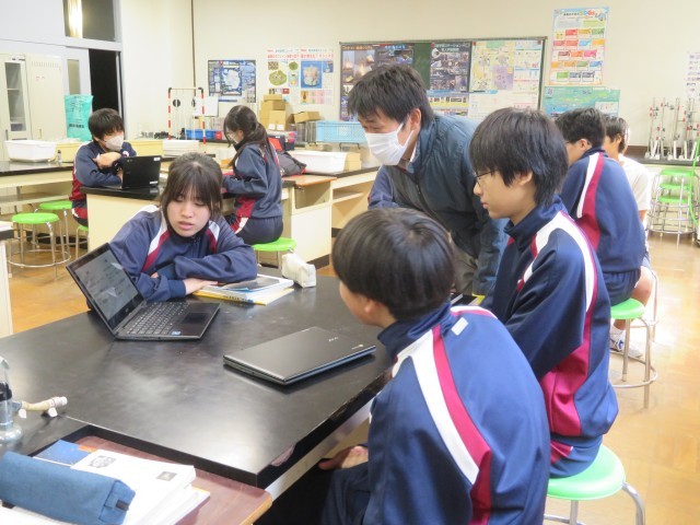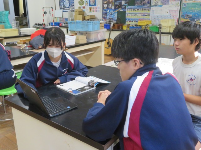 「宇宙の天体」仲間に、個人で作ったスライドの説明をしています。